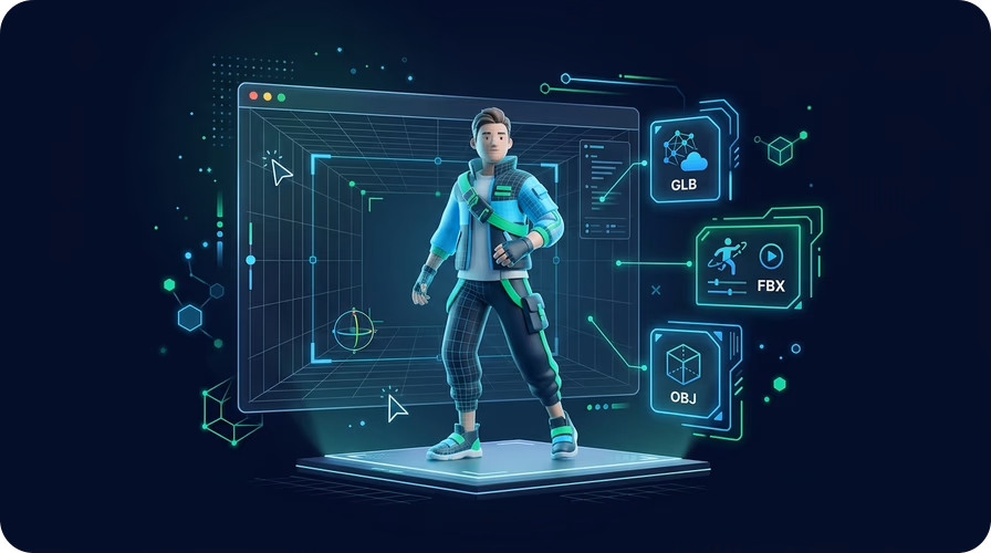 Yes. After generating your character, use Image to 3D to create a full 3D model. Export as GLB for Unity or Unreal Engine, FBX for animation, or OBJ for Blender.