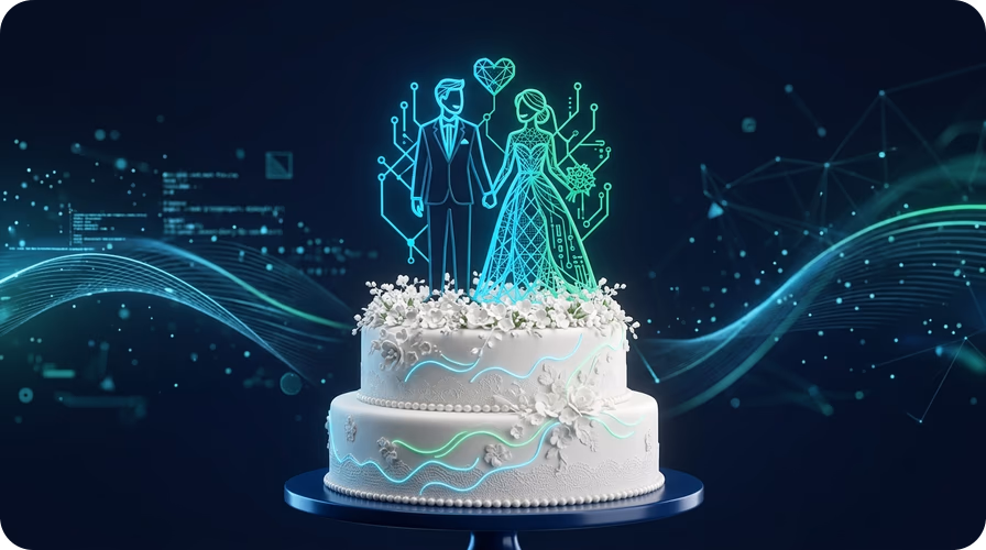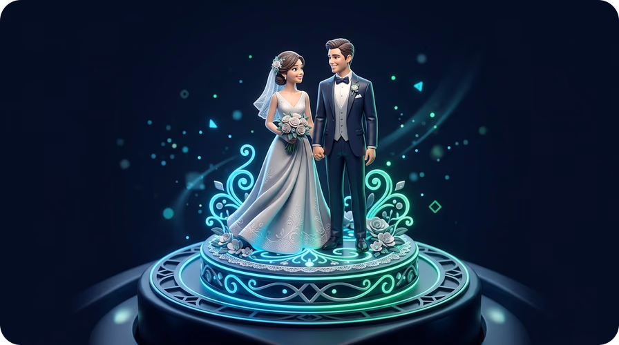 The AI works best with clear couple photos where both faces are visible. It captures facial features, body proportions, and clothing style to create a personalized topper.