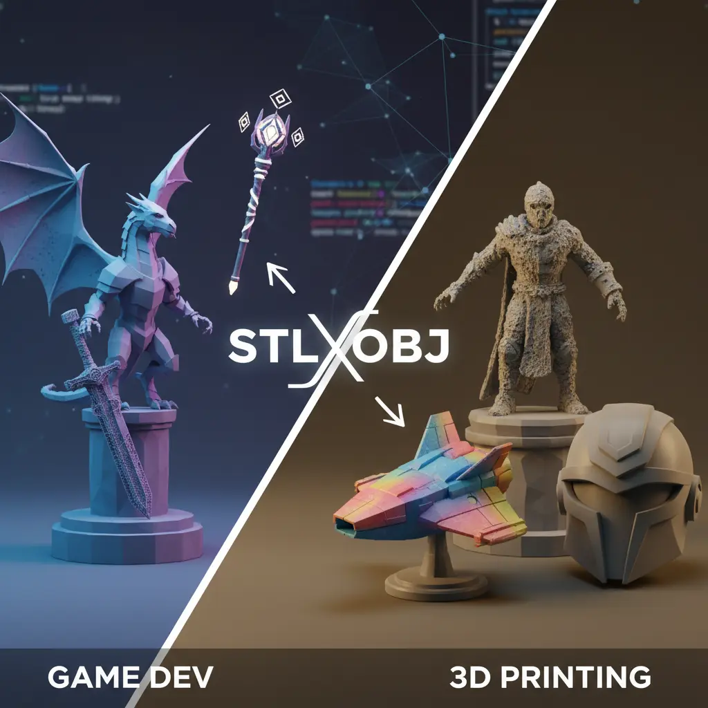 - Usage: Use STL for hardware (printing); use OBJ for software (games/animation).